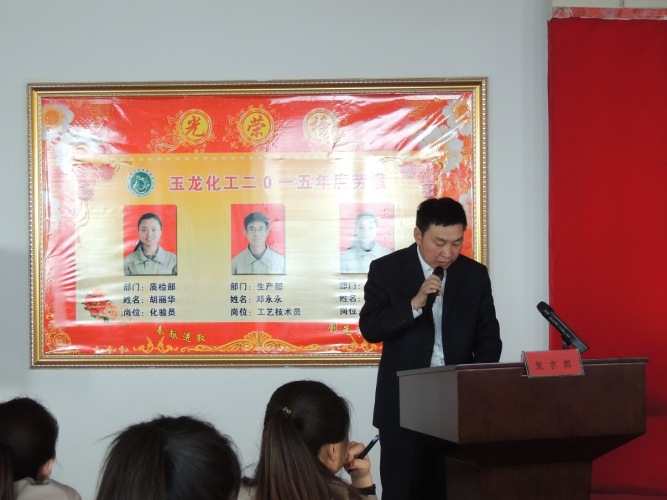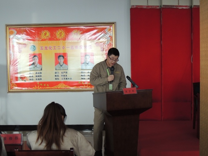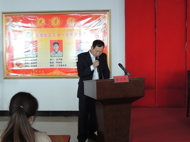 接著,由生產(chǎn)部總監(jiān)李彥波對2015年生產(chǎn)部進(jìn)行總結(jié),2015年產(chǎn)量達(dá)到歷史最高,2016年要從節(jié)能降耗、增產(chǎn)減排作為工作的突破口,確保圓滿完成公司的生產(chǎn)目標(biāo);維修部總監(jiān)李有平發(fā)言,總結(jié)了2015年工作維修量情況,對部門員工的個人清潔衛(wèi)生提出了改進(jìn)意見,并計劃在2016年作為“設(shè)備管理年”,設(shè)備管理工作由事后維修轉(zhuǎn)變?yōu)槭虑熬S護(hù)保養(yǎng),把本部門維修人員培養(yǎng)為“精一、通二、會三”復(fù)合型技能人才,為公司安全、穩(wěn)定、長周期、滿負(fù)荷、優(yōu)質(zhì)的生產(chǎn)運(yùn)行打下堅(jiān)實(shí)的基礎(chǔ);安環(huán)部總監(jiān)張忠孝重點(diǎn)突出了2016年的安全工作,以“安全第一,預(yù)防為主,以人為本,全員參與,節(jié)能減排,綠色科技”為方針,為公司安全生產(chǎn)保駕護(hù)航;員工代表的發(fā)言感謝了玉龍化工的培養(yǎng)和信任,他們以玉龍為家,以作為玉龍人而自豪。
